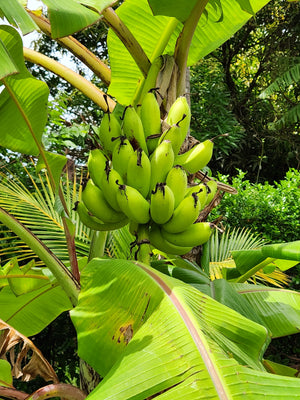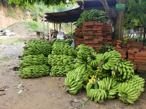Our Regenerative Organic Certified® bananas mother plants take about nine months to bear fruit. At that time, an exotic pink flower will bloom at the top of the banana’s trunk. As the flower grows, it unveils clusters of bananas. Our farming partners use a machete to cut through the thick stem when they harvest, and they use the stems as compost or to protect the soil as groundcover.