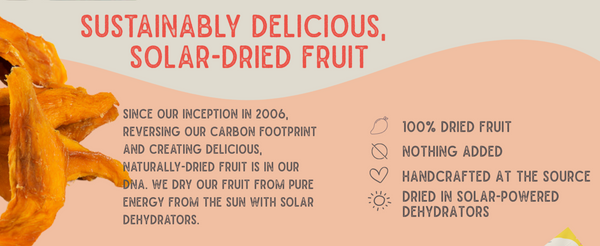Since our inception in 2006, reversing our carbon footprint and creating delicious, naturally-dried fruit is in our DNA. We dry our fruit from pure energy from the sun with solar dehydrators.