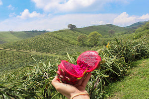 Dragon fruit is grown in the nutrient-dense soil close to the base of the active volcano, Masaya. Our farmers use 100% organic and sustainable farming techniques drawing down atmospheric carbon into the soil to cool the earth. They also use legumes to protect the pitahaya and infuse nitrogen into the soil during the hot summer months.